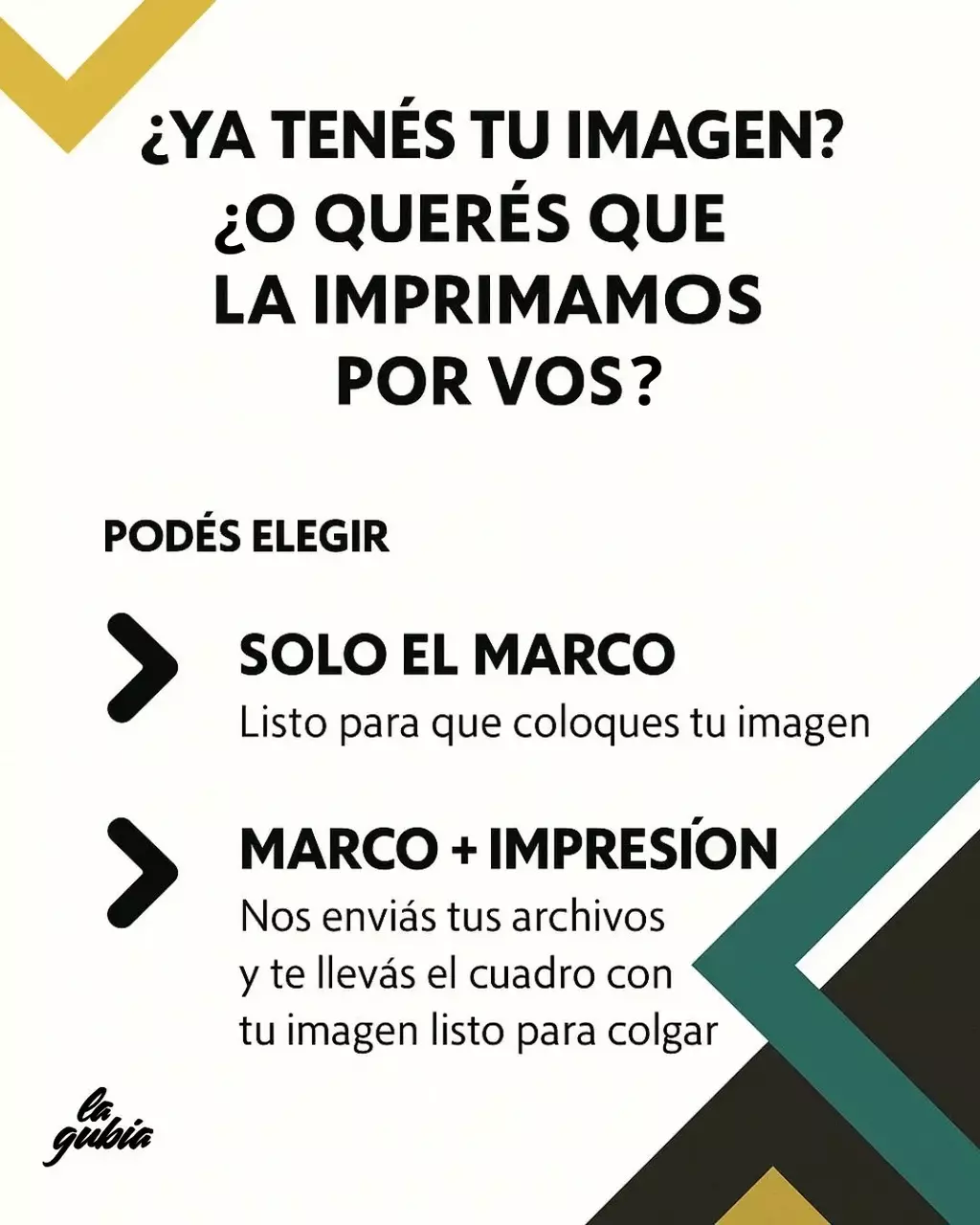 Podés elegir que imprimamos tu imagen y te entregamos el cuadro listo para colgar.